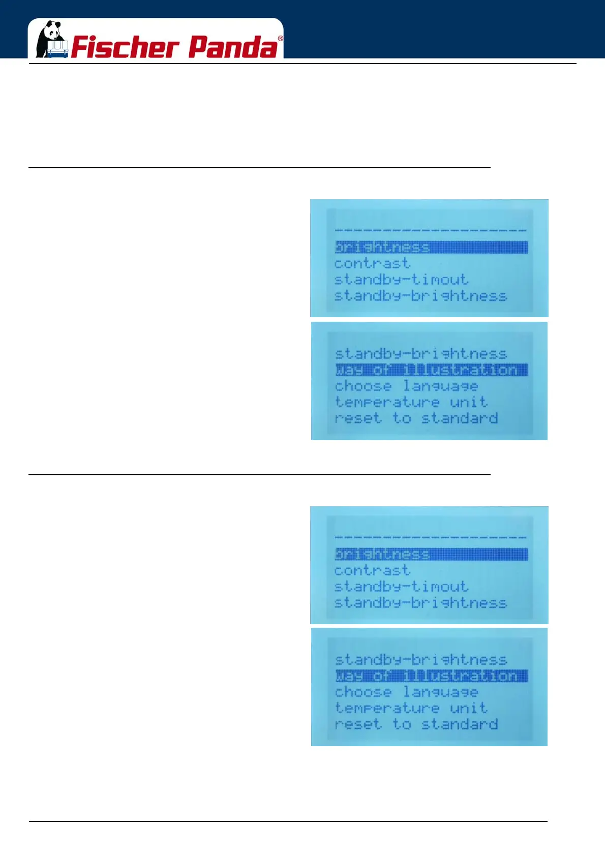 the submenu „Service“ is a restricted area for Fischer Panda Staff.