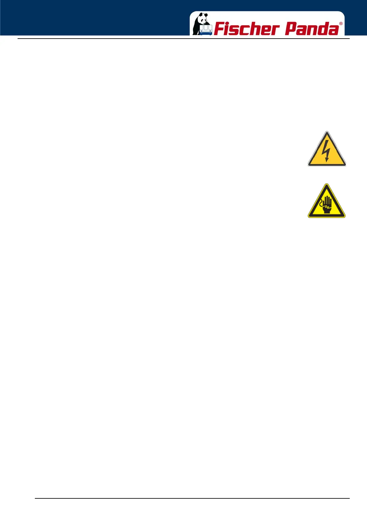 Fischer Panda 12000 - Protective Conductor and Potential Equalisation; Protective Conductor for Panda AC Generators; Switch off All Loads While Working on the Generator; Potential Equalisation for Panda AGT DC Generators