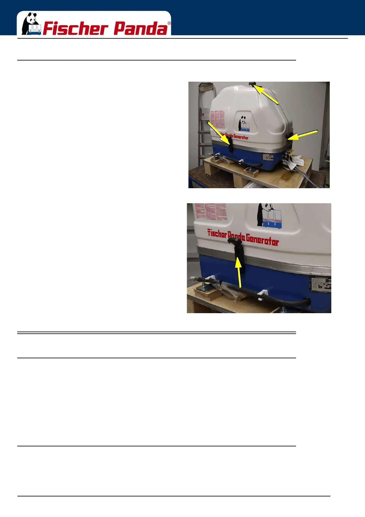 • For transport, the Fischer Panda transport box shall be used for the generator. The generator shall be securely