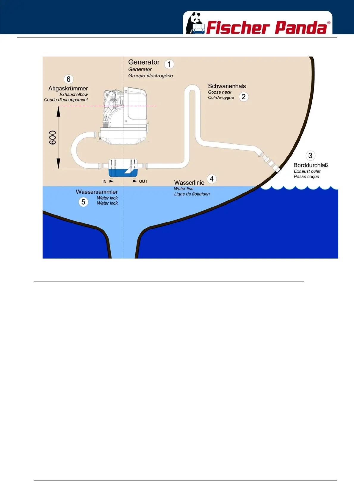 running, cooling water is continuously injected into the exhaust system and is carted outside with the emissions by