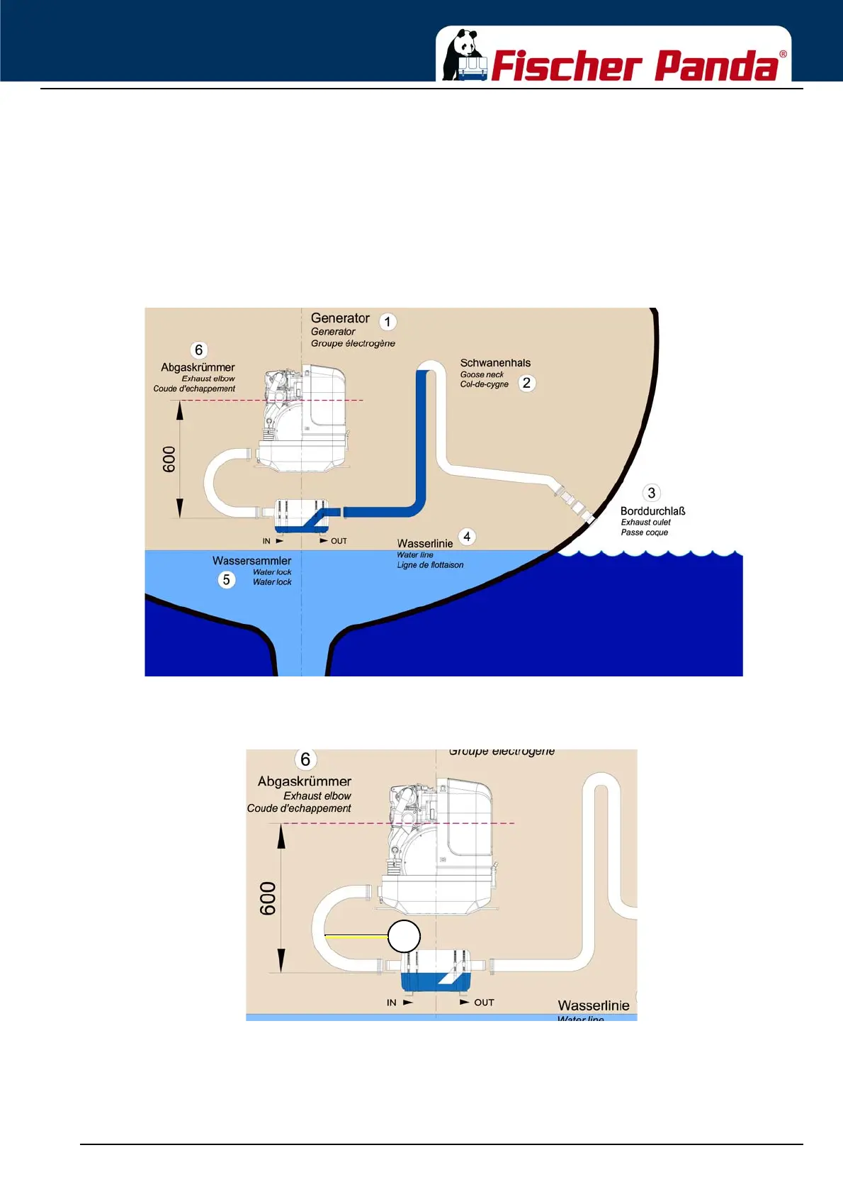 water remaining in the hose at that point flows back into the waterlock. At the same time, the diesel engine itself