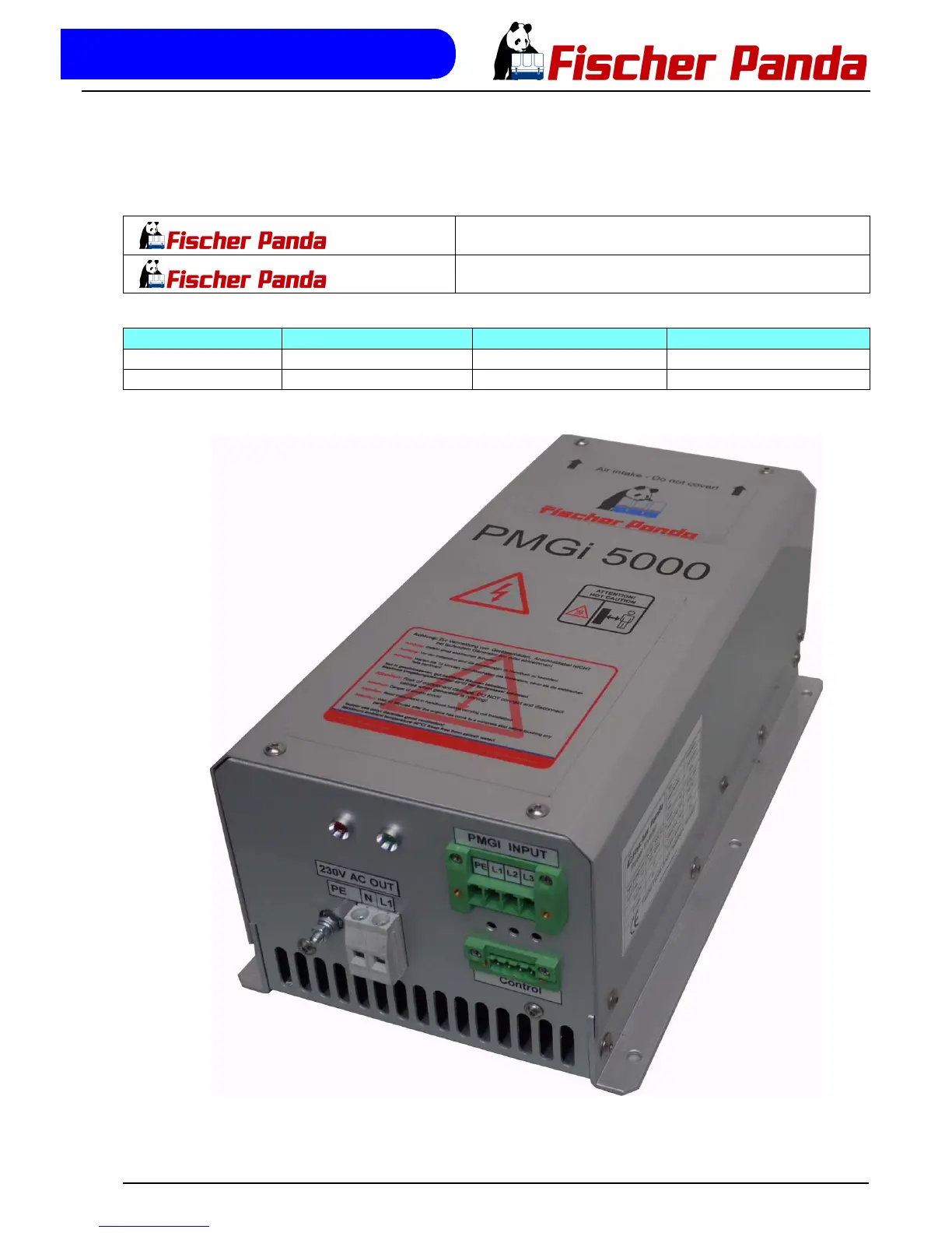 Fischer Panda 5000i PMS - Inverter Panda PMGi 5000 Datasheet