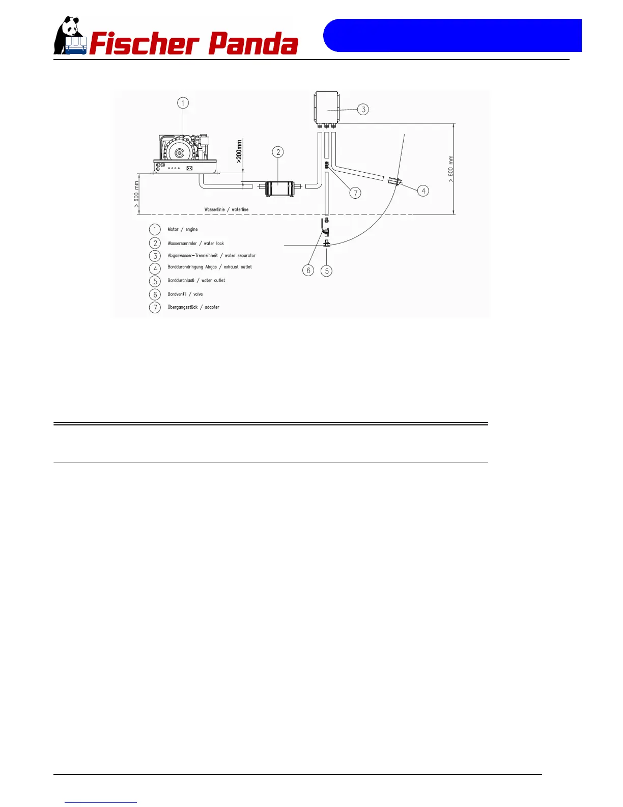 If the thru-hull exhaust outlet has to be mounted far from the generator, an exhaust-water separator must definitely