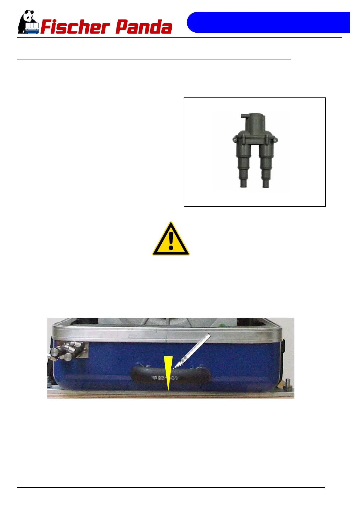If the generator cannot be attached at least 600 mm above the waterline, a vent valve must be installed at the raw
