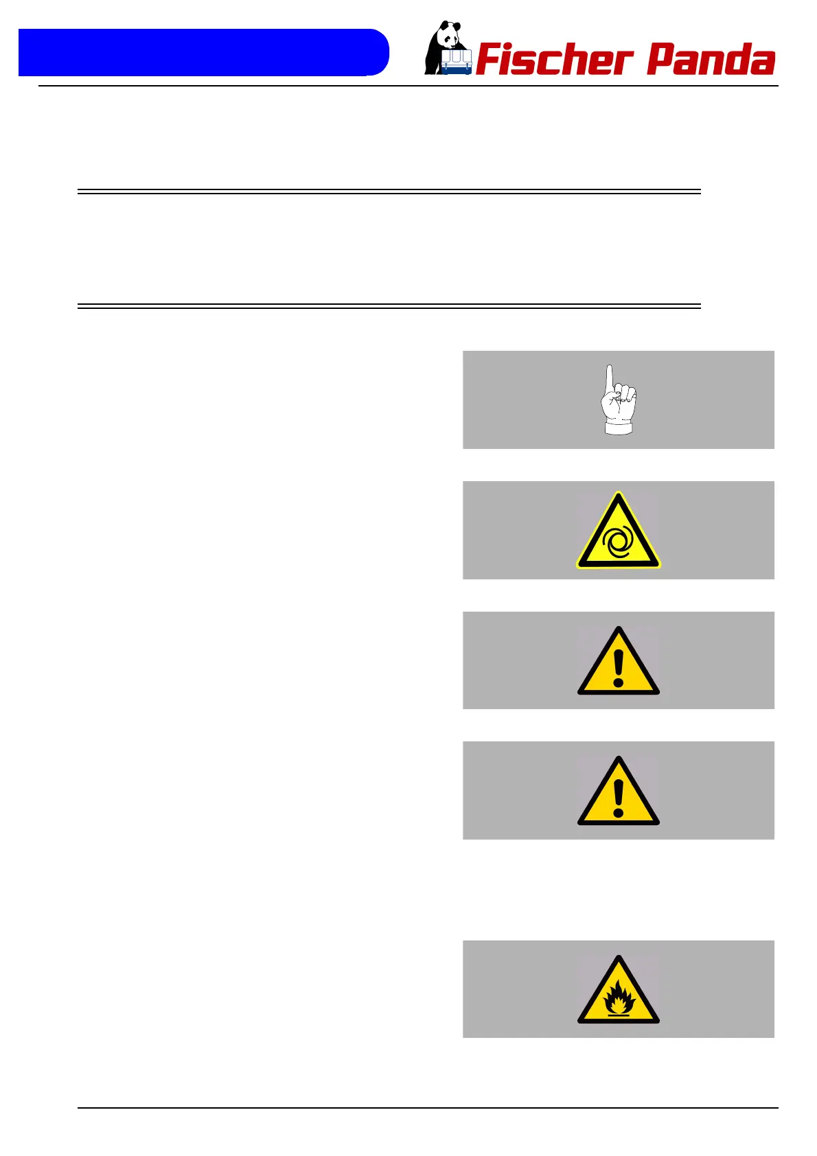 Further maintenance work must only be made by Technical personel or Fischer Panda service points.