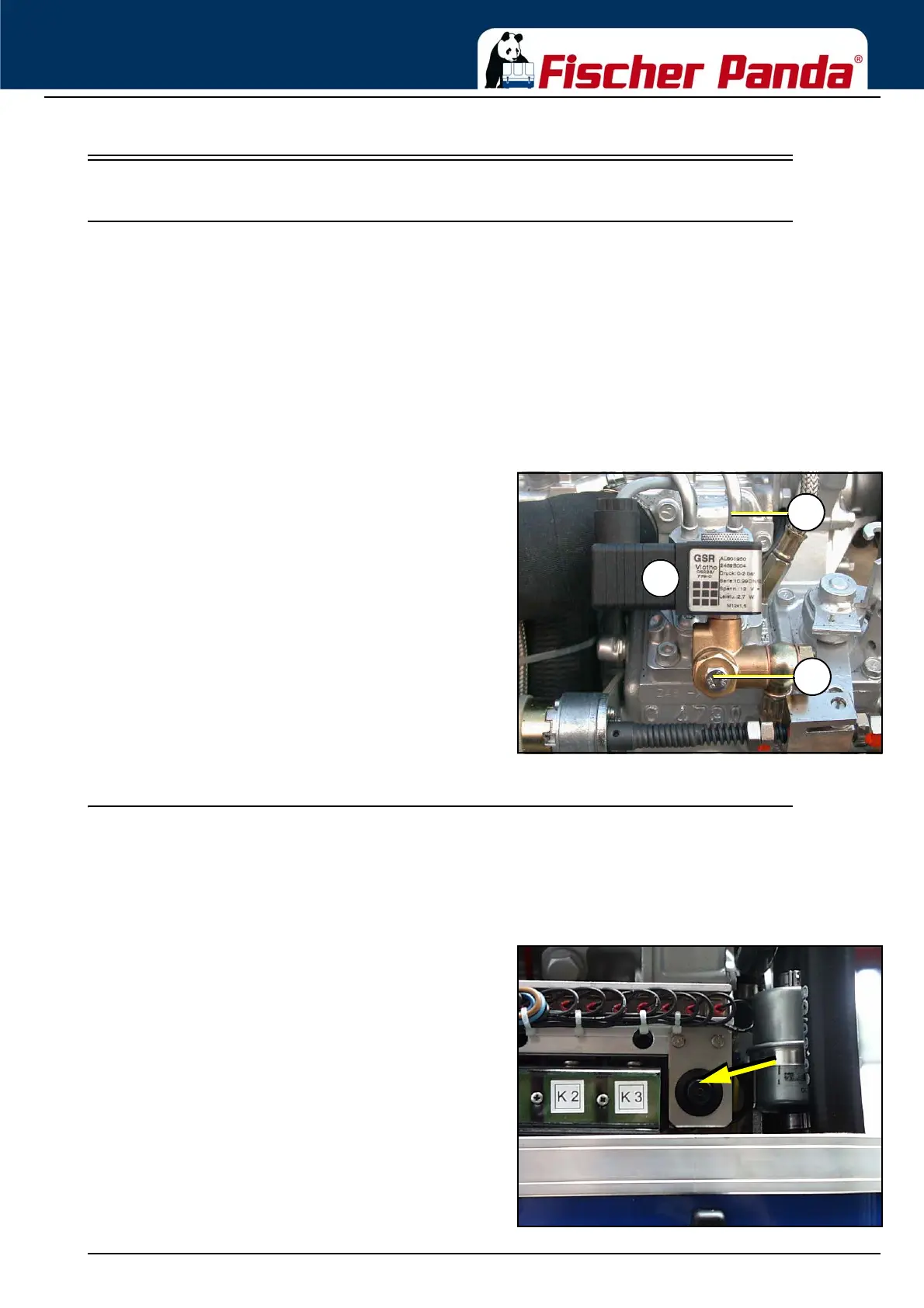 The fuel solenoid valve is located in front of the injection pump. It opens automatically, if the „START“-button is