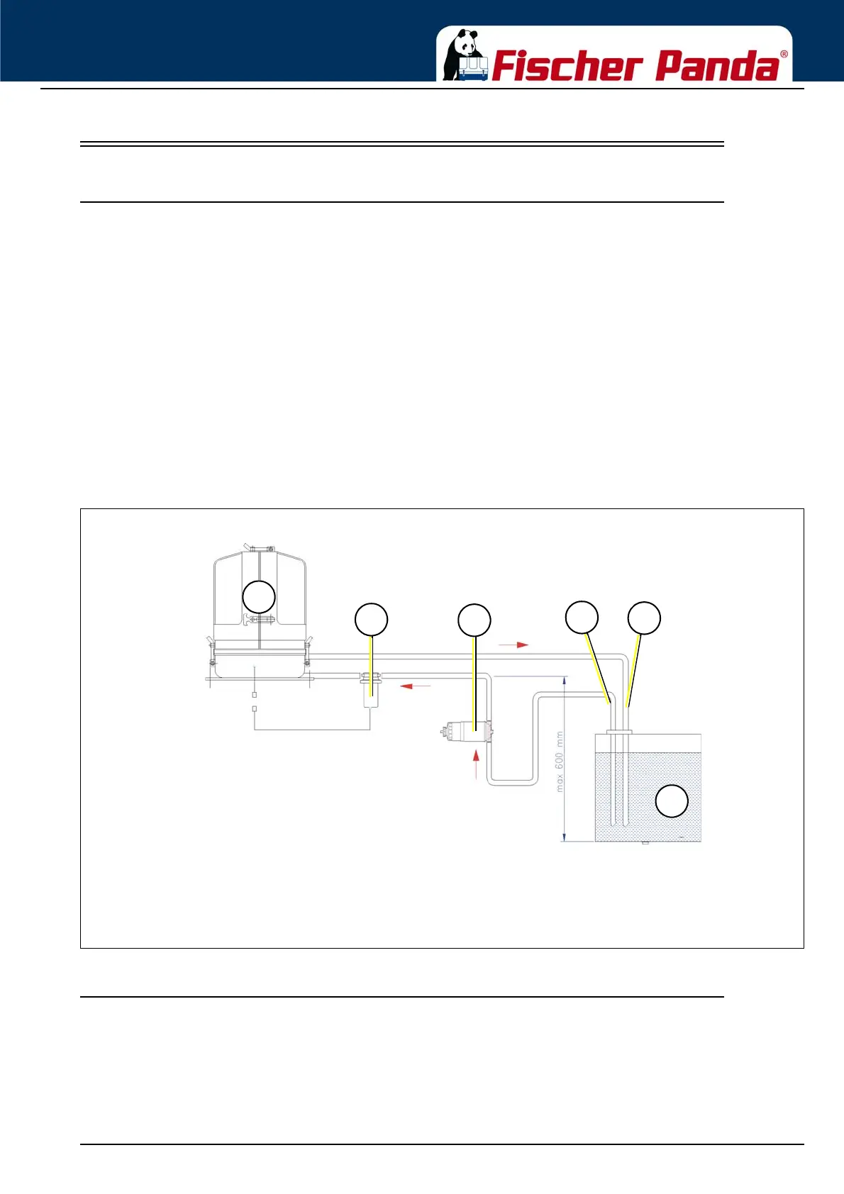 Generally forward and return fuel flow pipes must be mounted to the diesel tanks. Do not connect the generator fuel