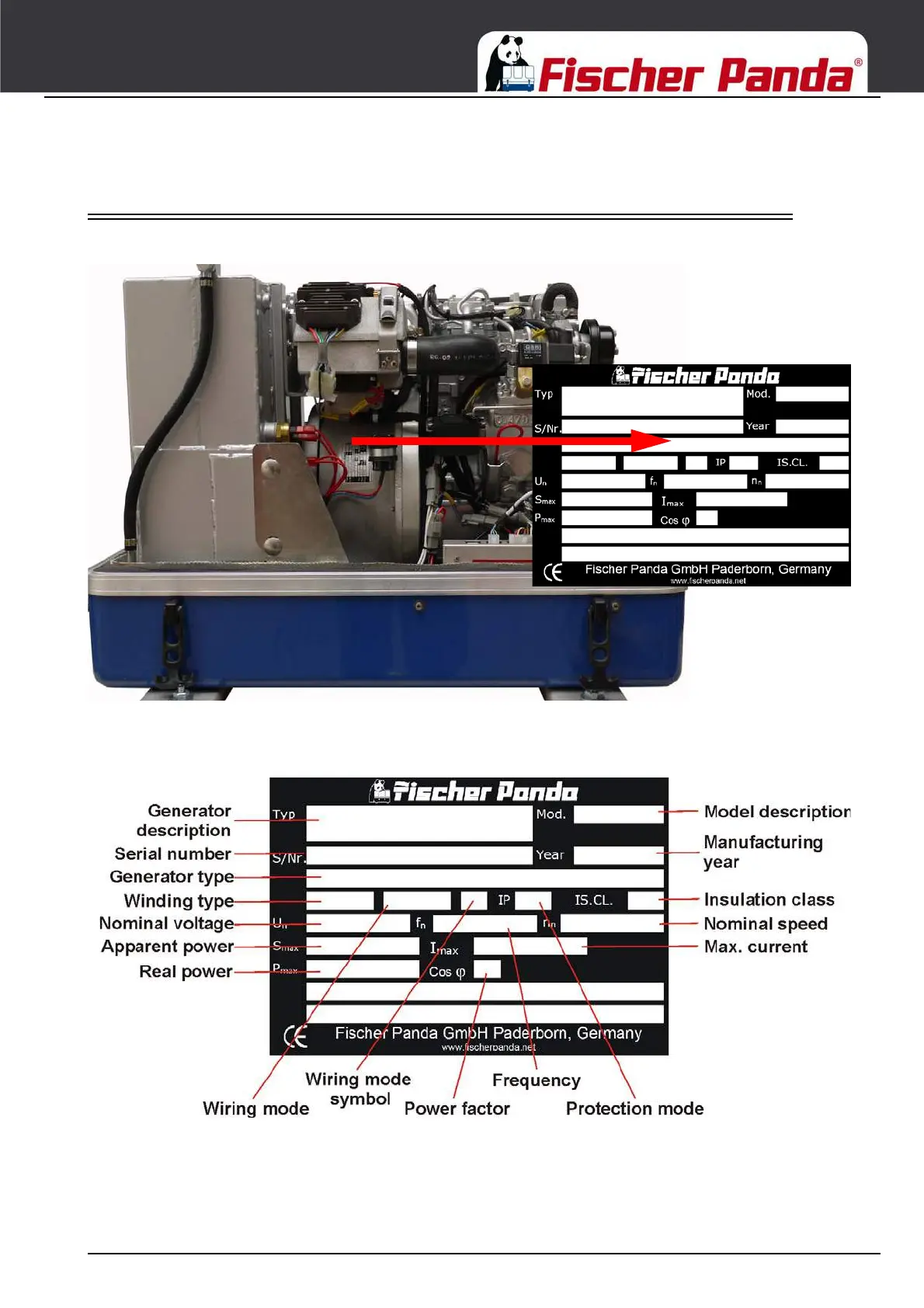 Fischer Panda 8000i - The Panda Generator System; Generator Type Plate and Description
