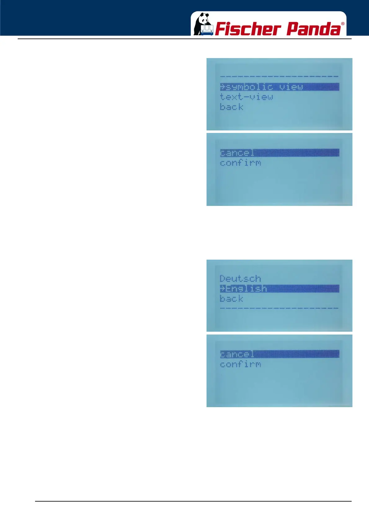 Fig. 11.1.7.5-1: Submenu „way of illustration“Choose „symbolic view“ or text view“ with the „Step-up“/