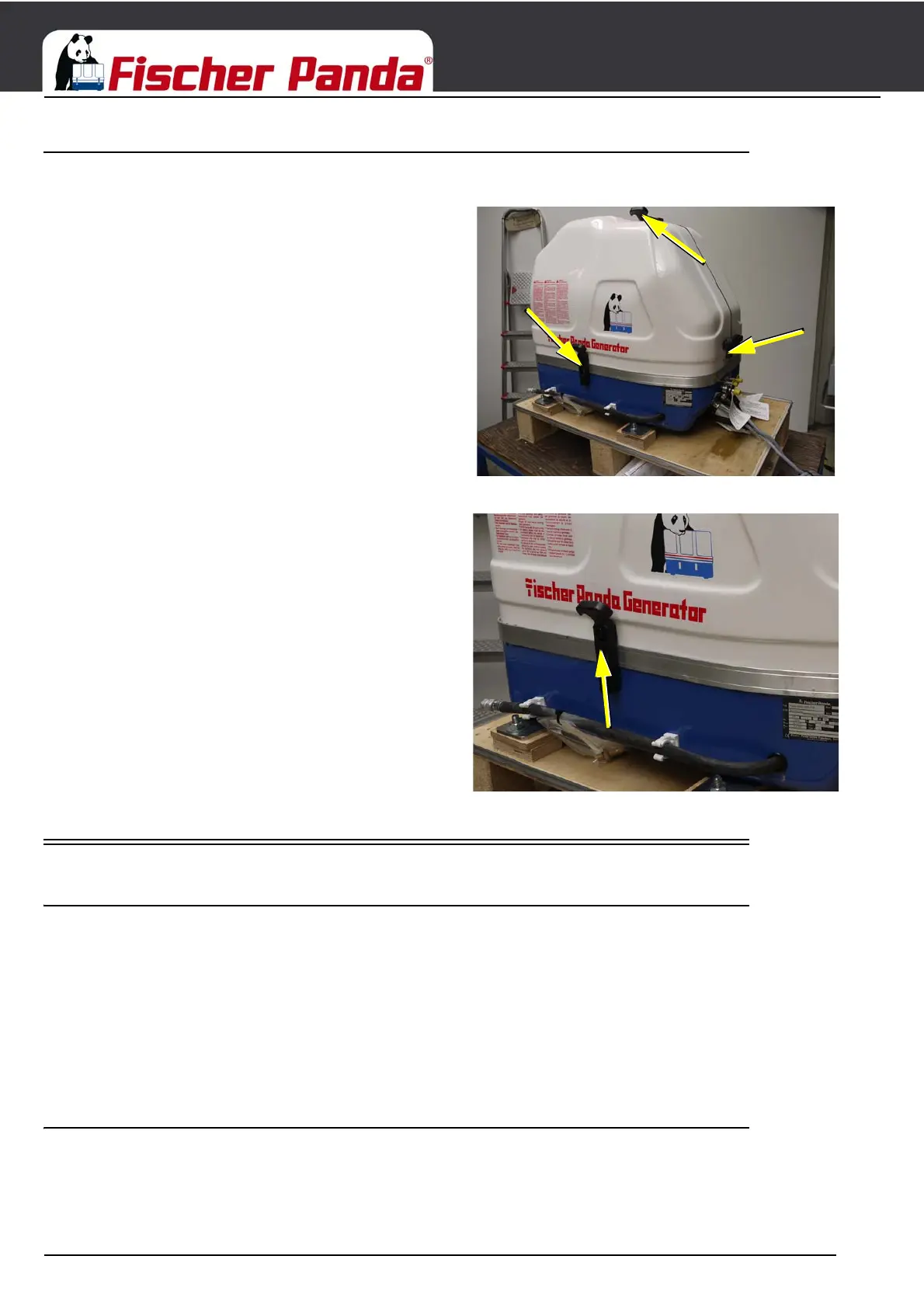 • For transport, the Fischer Panda transport box shall be used for the generator. The generator shall be securely