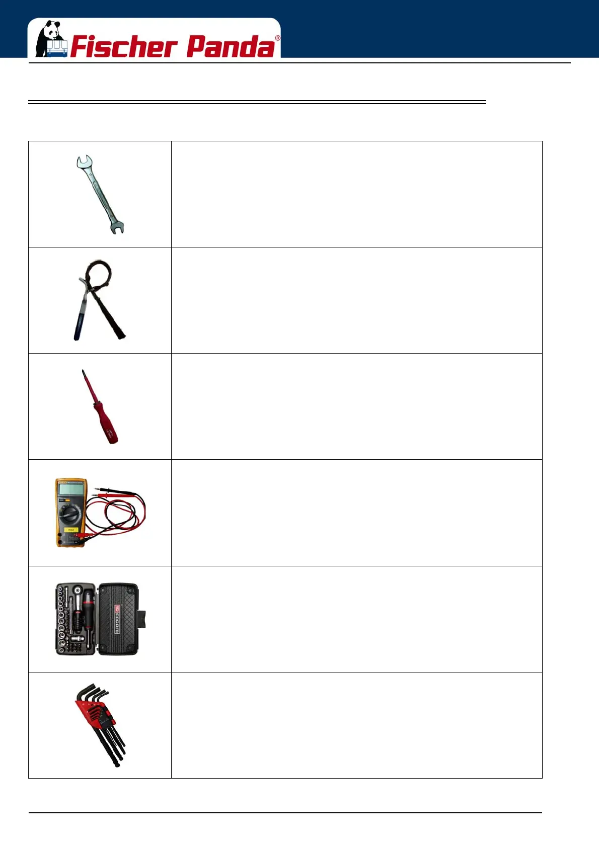 These symbols are used throughout this manual to show which tool must be used for maintenance or installation.