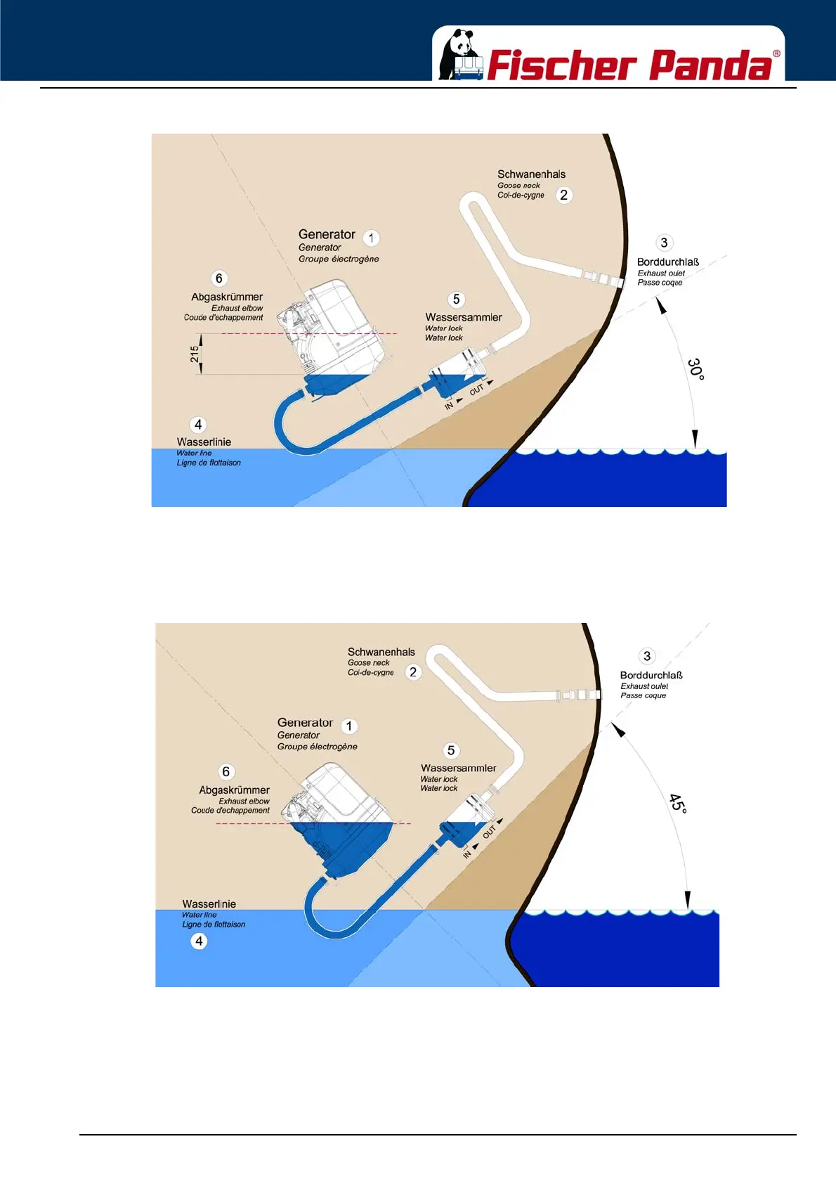 position of 45 degrees with an installation like this, the ingress of cooling water into the combustion chamber is