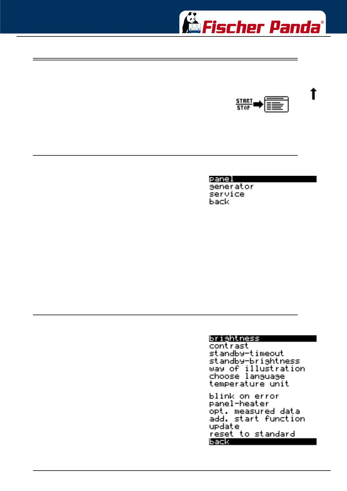 3. The "Service" sub-menu is blocked and can only be accessed by trained personnel and Fischer Panda
