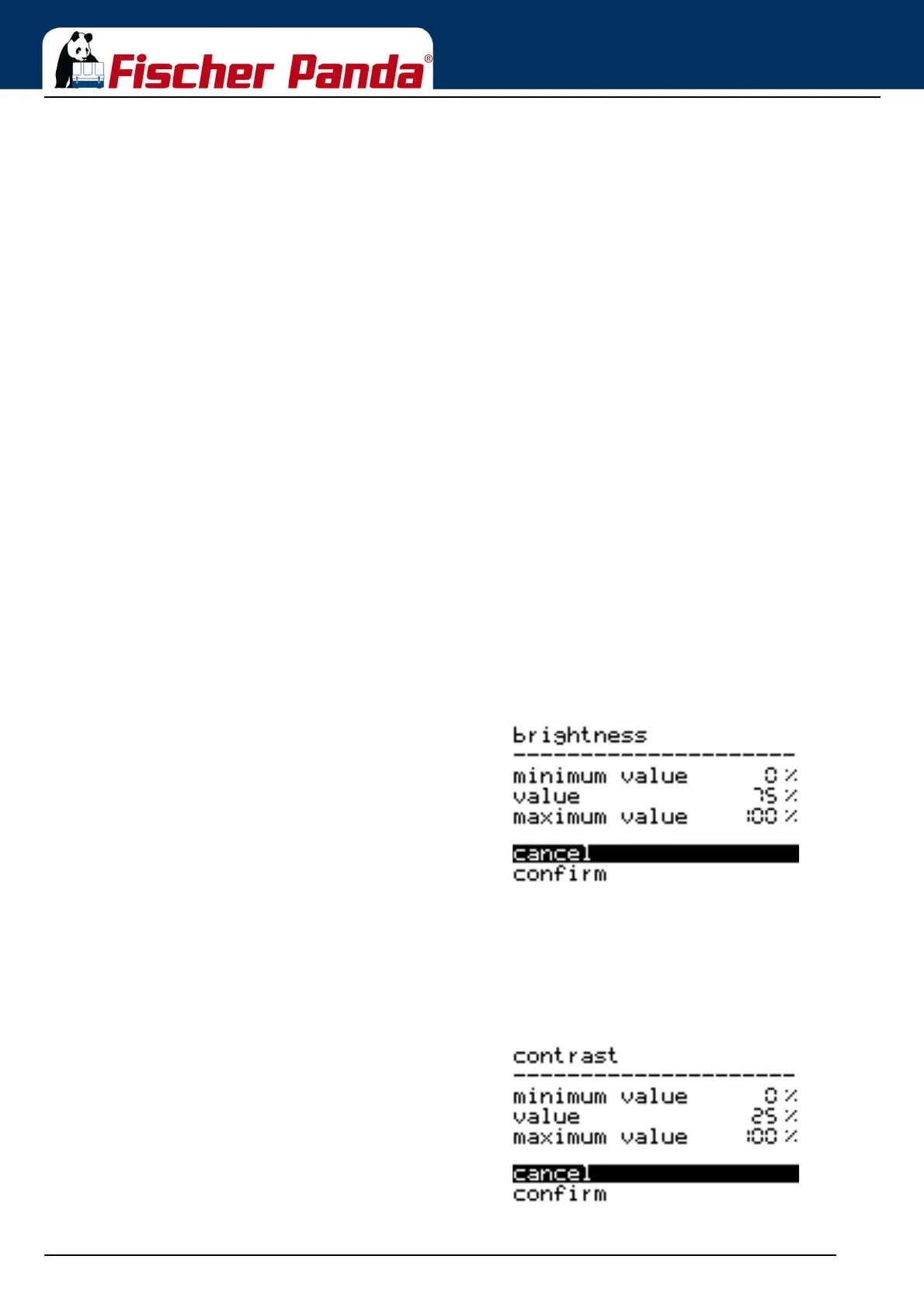 Fig. 2.5.2.2-1: Sub-menu: ContrastThe value is changed by using the "Step-up"/"Step-down"