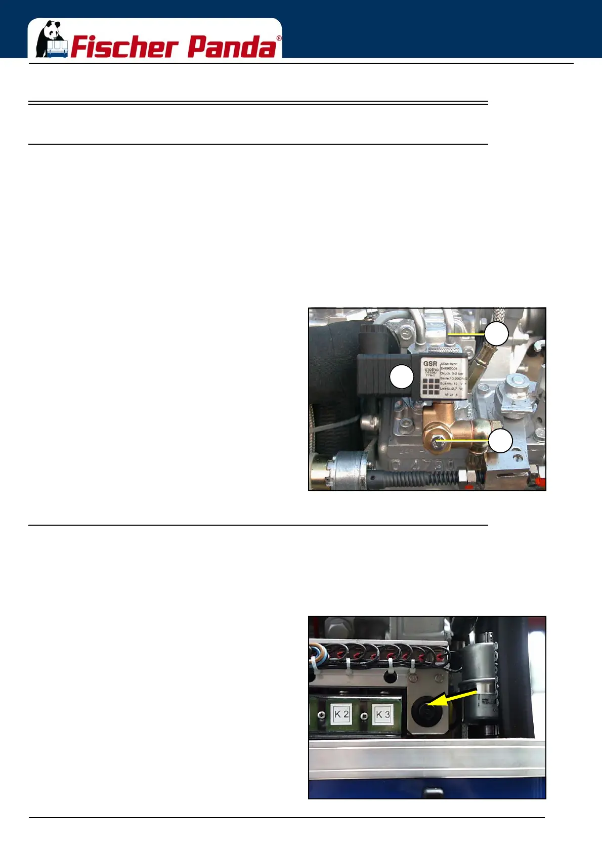 The fuel solenoid valve is located in front of the injection pump. It opens automatically, if the „START“-button is