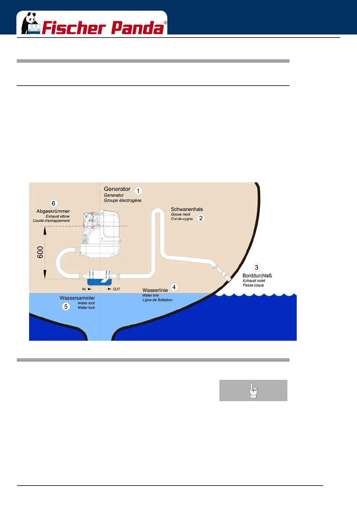 other unit(s) on board. The water lock must be installed at the lowest point of the exhaust system. An optional noise