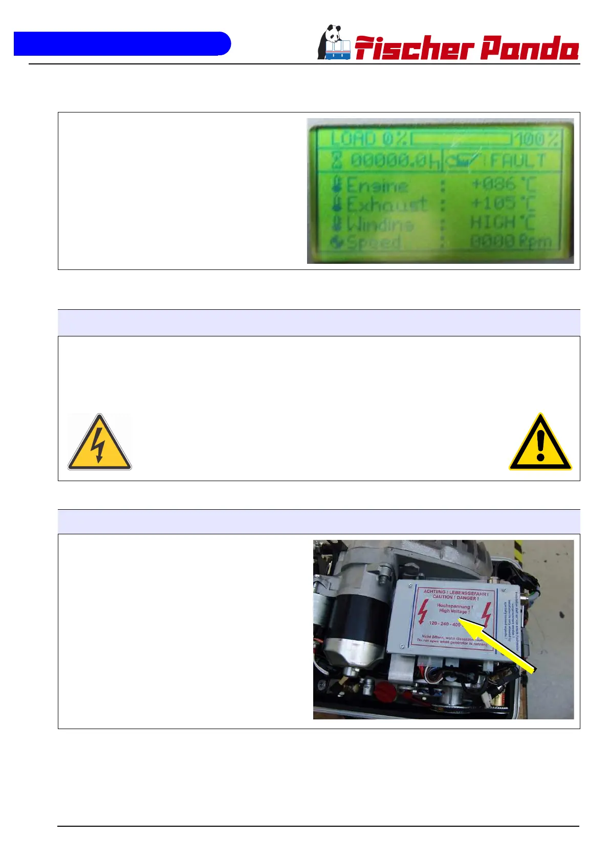 Example for an error display after the generator was