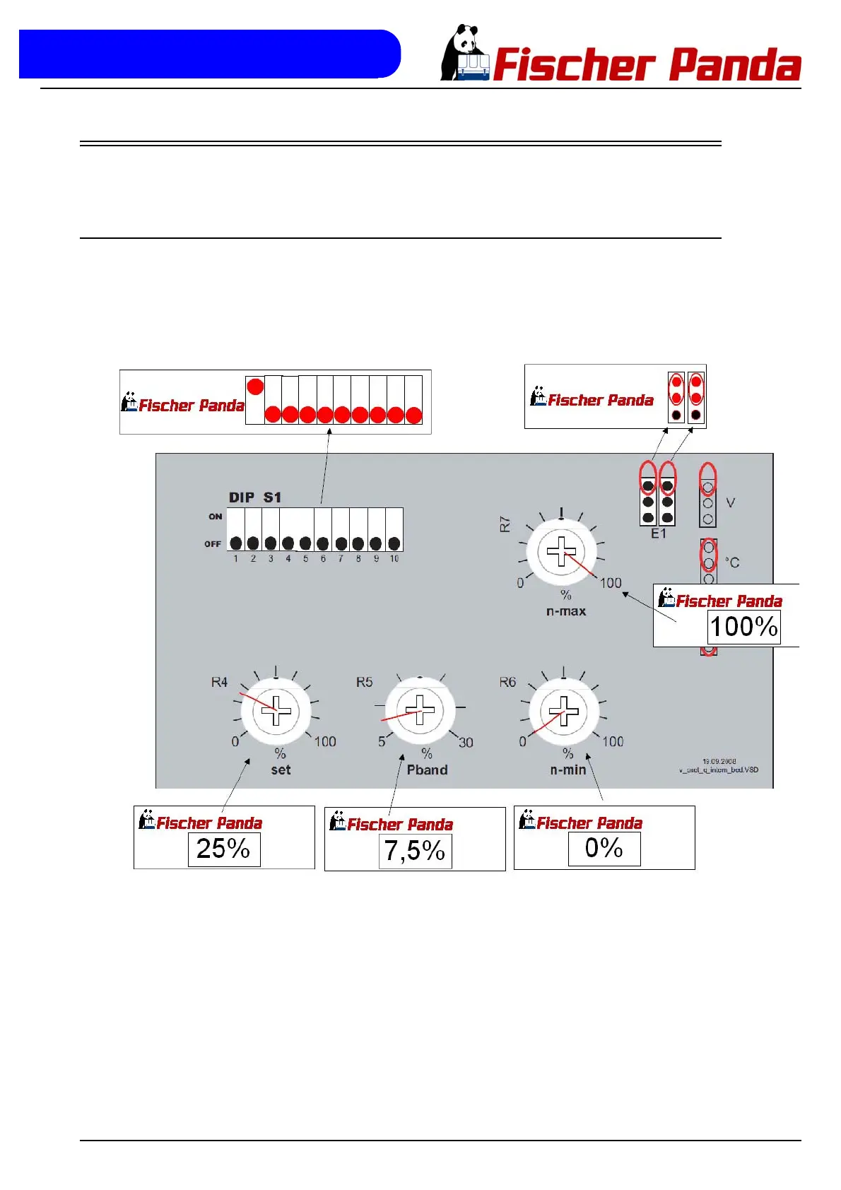Die Ziehl Abegg Lüftersteuerung wird von Fischer Panda voreingestellt und versiegelt. Als Voreinstellung gelten