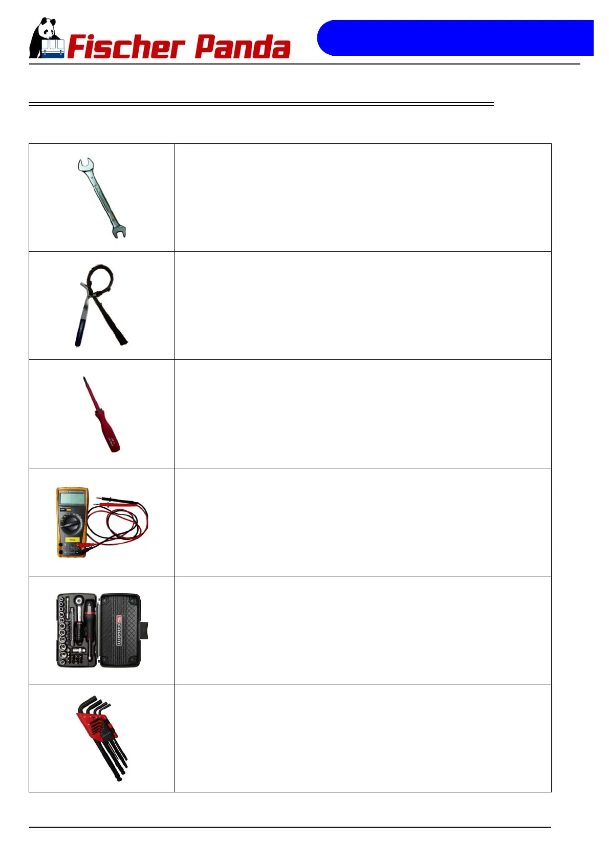 These symbols are used throughout this manual to show which tool must be used for maintenance or installation.