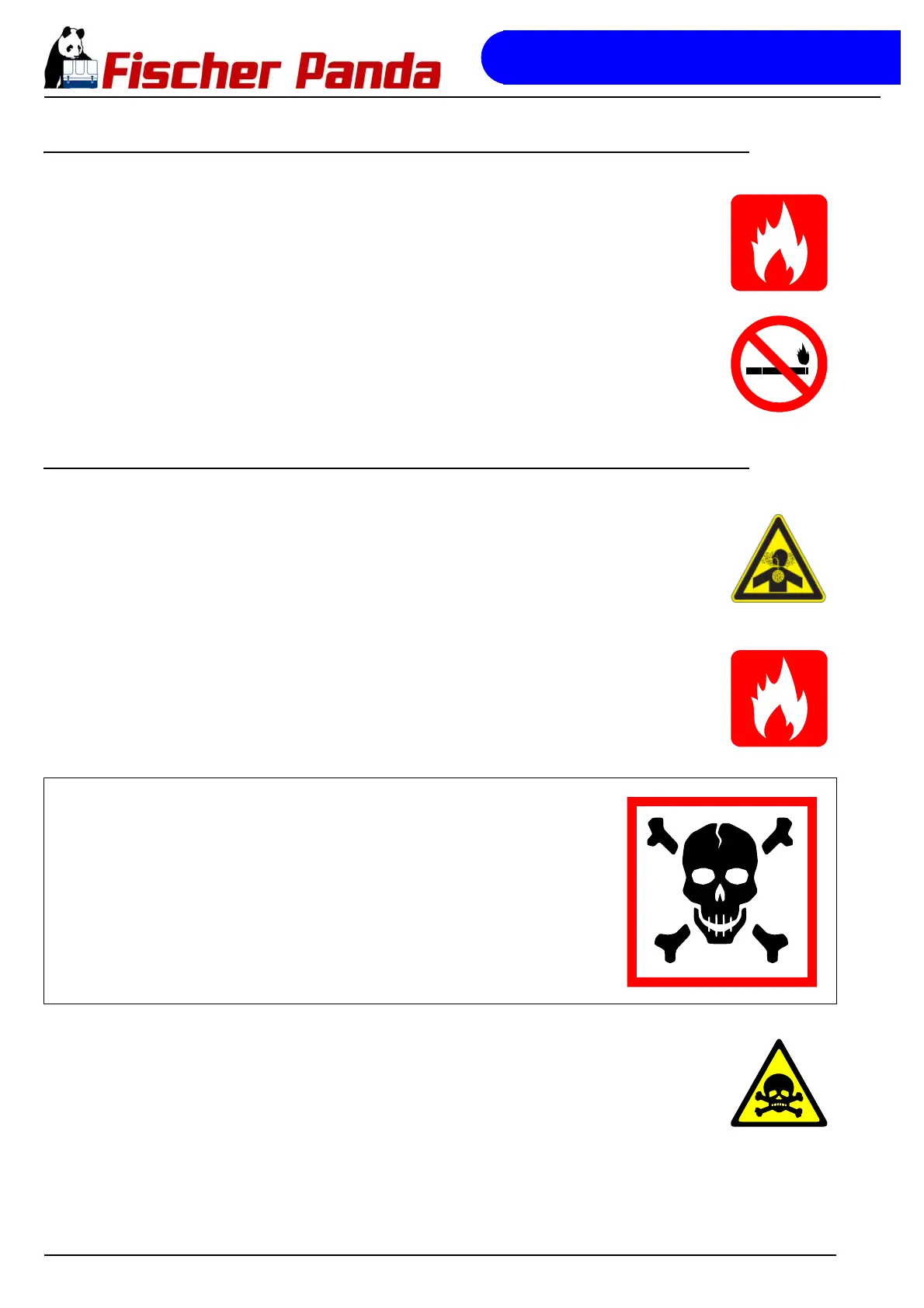 Do not smoke and avoid naked flame and sparking near fuels and the generator. Fuel is highly