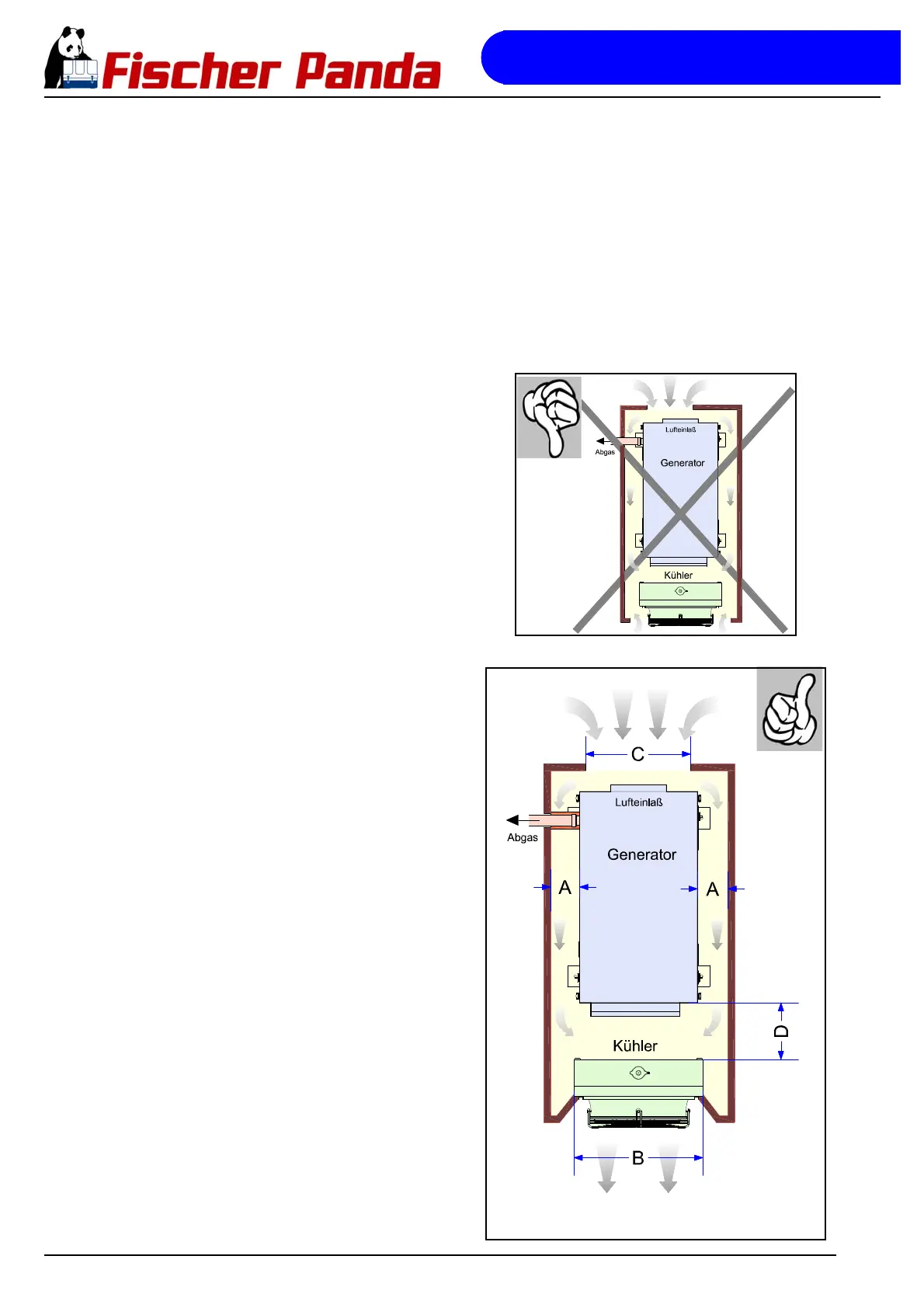 • Der Abstand Generator zum Radiatorkühler muss mindestens 1/2 Radiatorbreite entsprechen