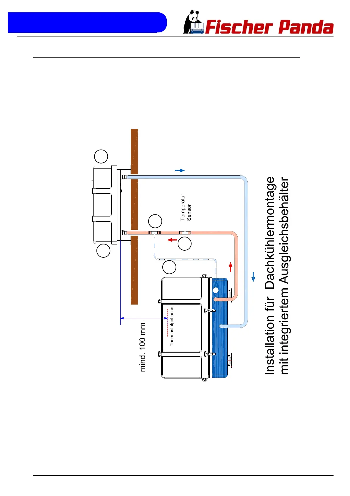 Fischer Panda Panda 8000 - Installationsschema für Dachkühlermontage mit Ausgleichsbehälter