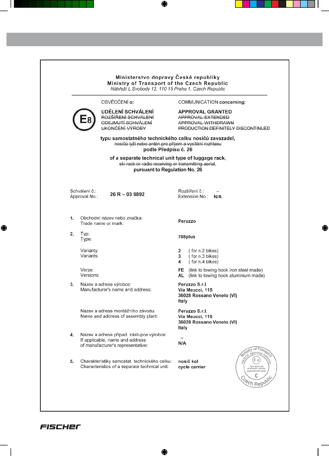 FISCHER 10443 - EEC Betriebserlaubnis; EEC Operating Permit; Lhomologation européenne