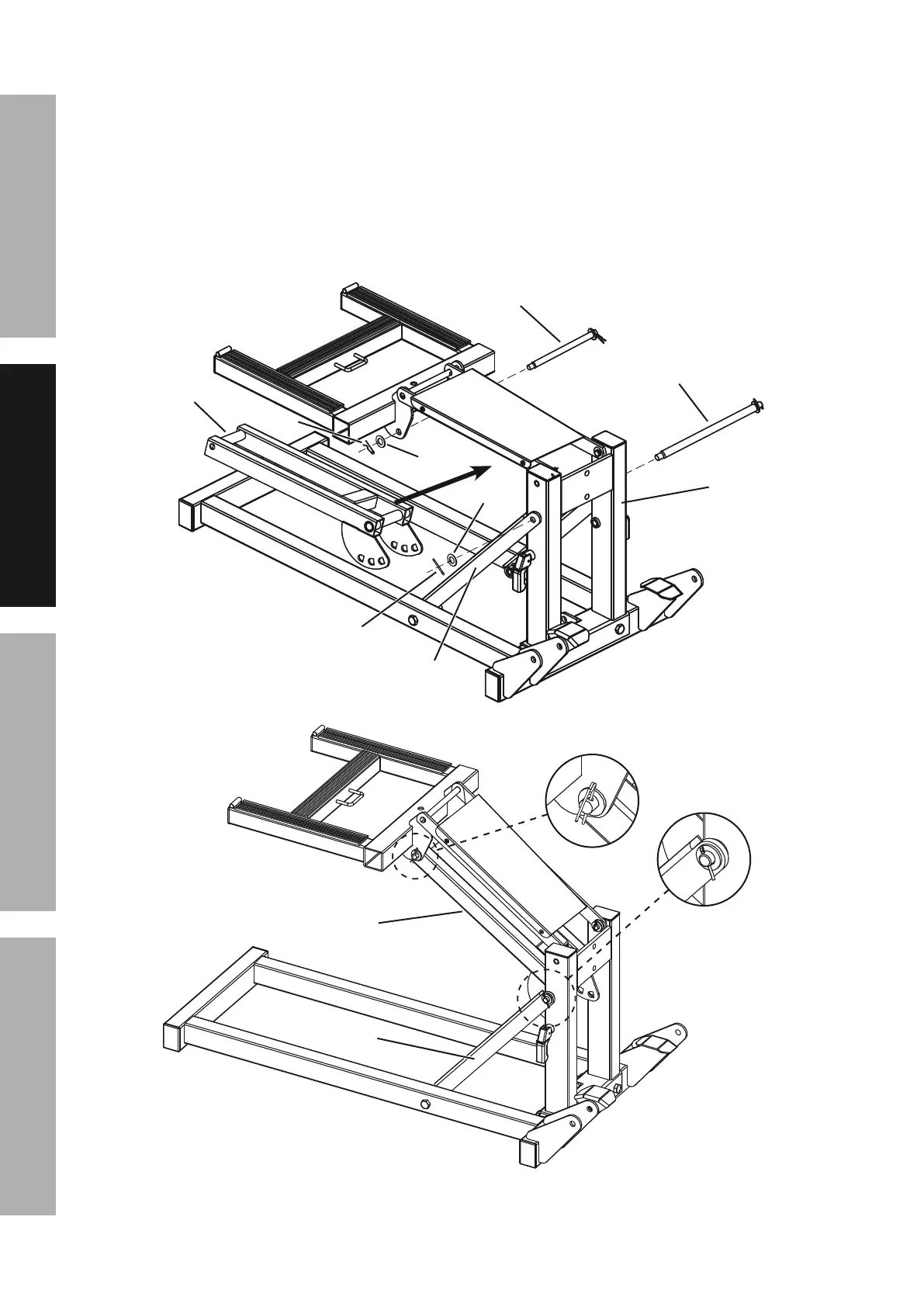Raise up the previously installed Support Bars. Insert the Long Lift Arm Rod through the Support Bar, the