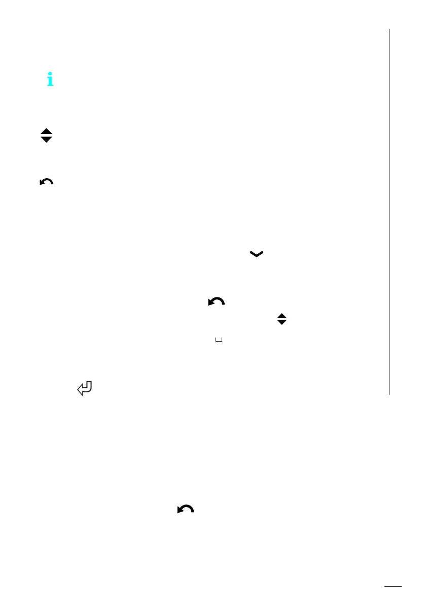 Select the desired character by means of the keys.