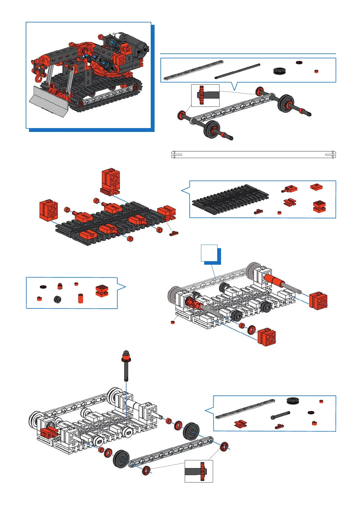 fischertechnik Pneumatic Power - Track Mounted Recovery Vehicle Assembly; Recovery Vehicle Step 1: Track Frame; Recovery Vehicle Step 2: Track Links; Recovery Vehicle Step 3: Drive Sprockets