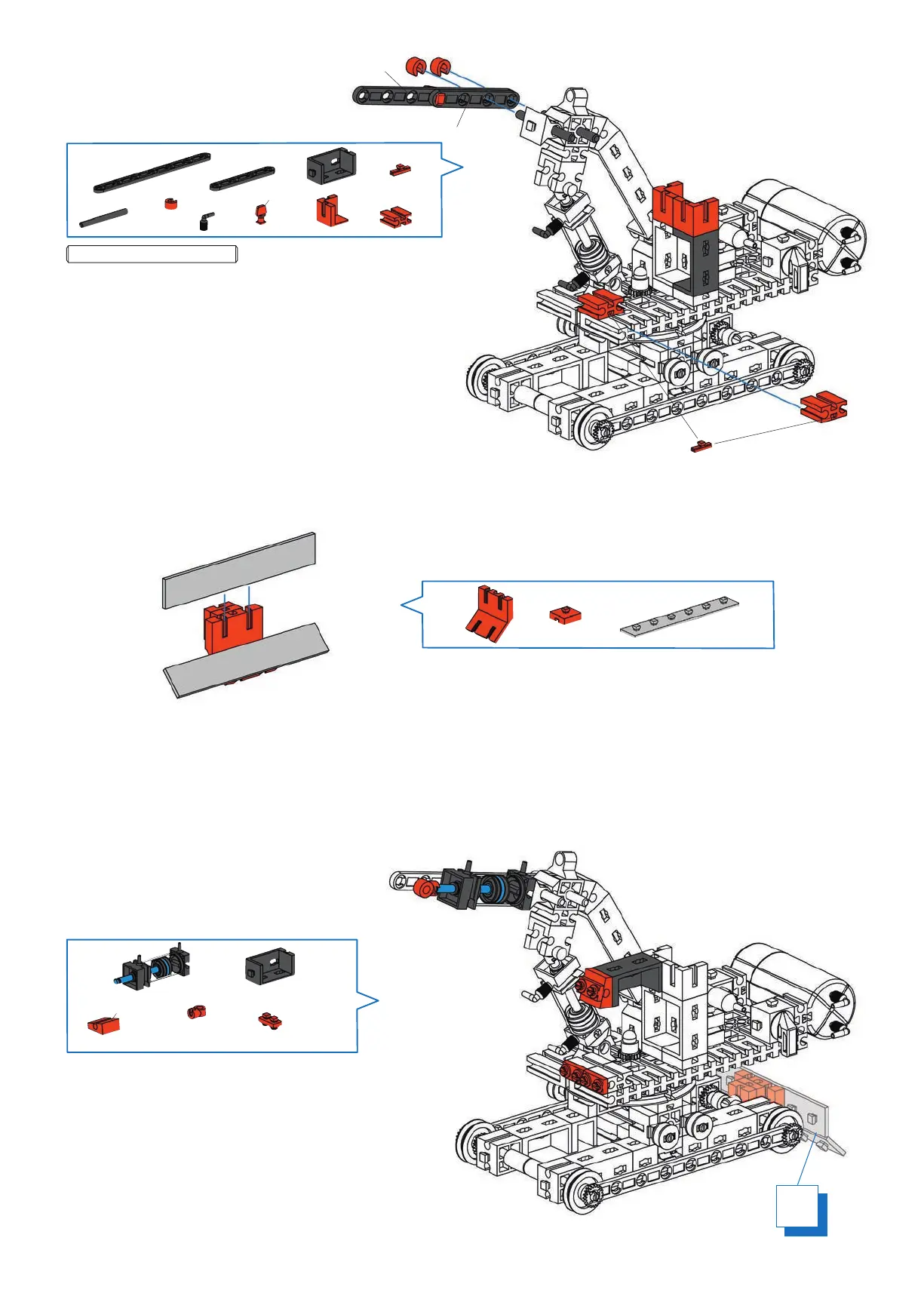 fischertechnik Pneumatic Power - Excavator Step 10: Drive and Gear System; Excavator Step 11: Track Roller Assembly; Excavator Step 12: Final Arm Attachment