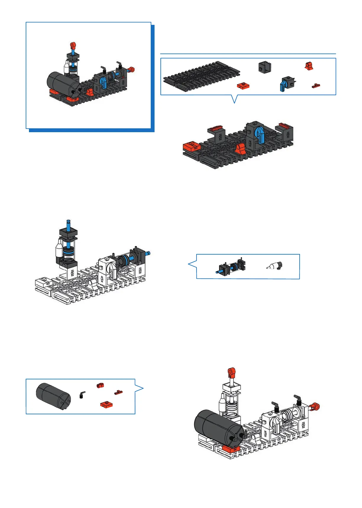 fischertechnik Pneumatic Power - Function Model Assembly; Function Model Step 1: Initial Assembly; Function Model Step 2: Intermediate Assembly; Function Model Step 3: Final Assembly