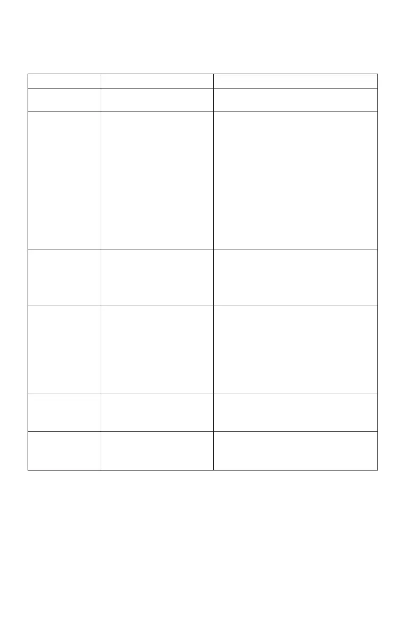 Please refer to the following table to help you identify and correct some of the