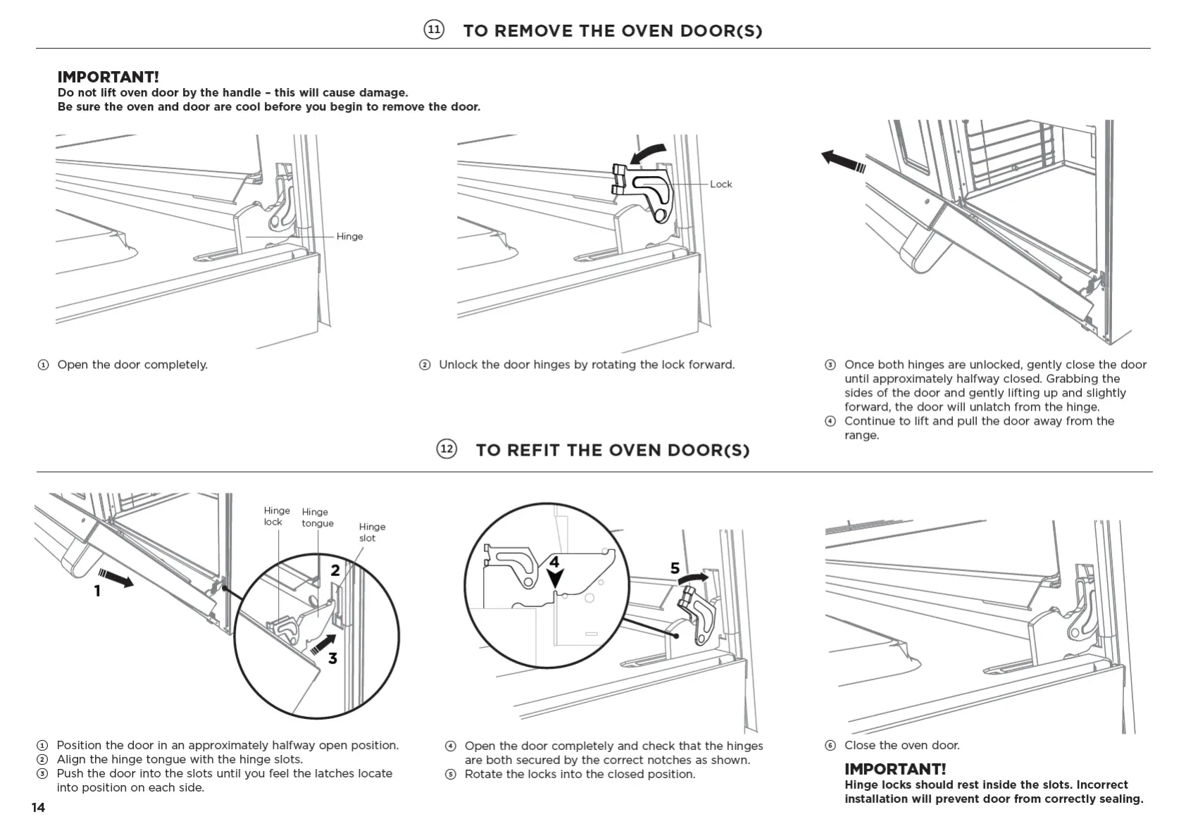 Fisher & Paykel PROFESSIONAL Series - To Remove the Oven Door(s); To Refit the Oven Door(s)