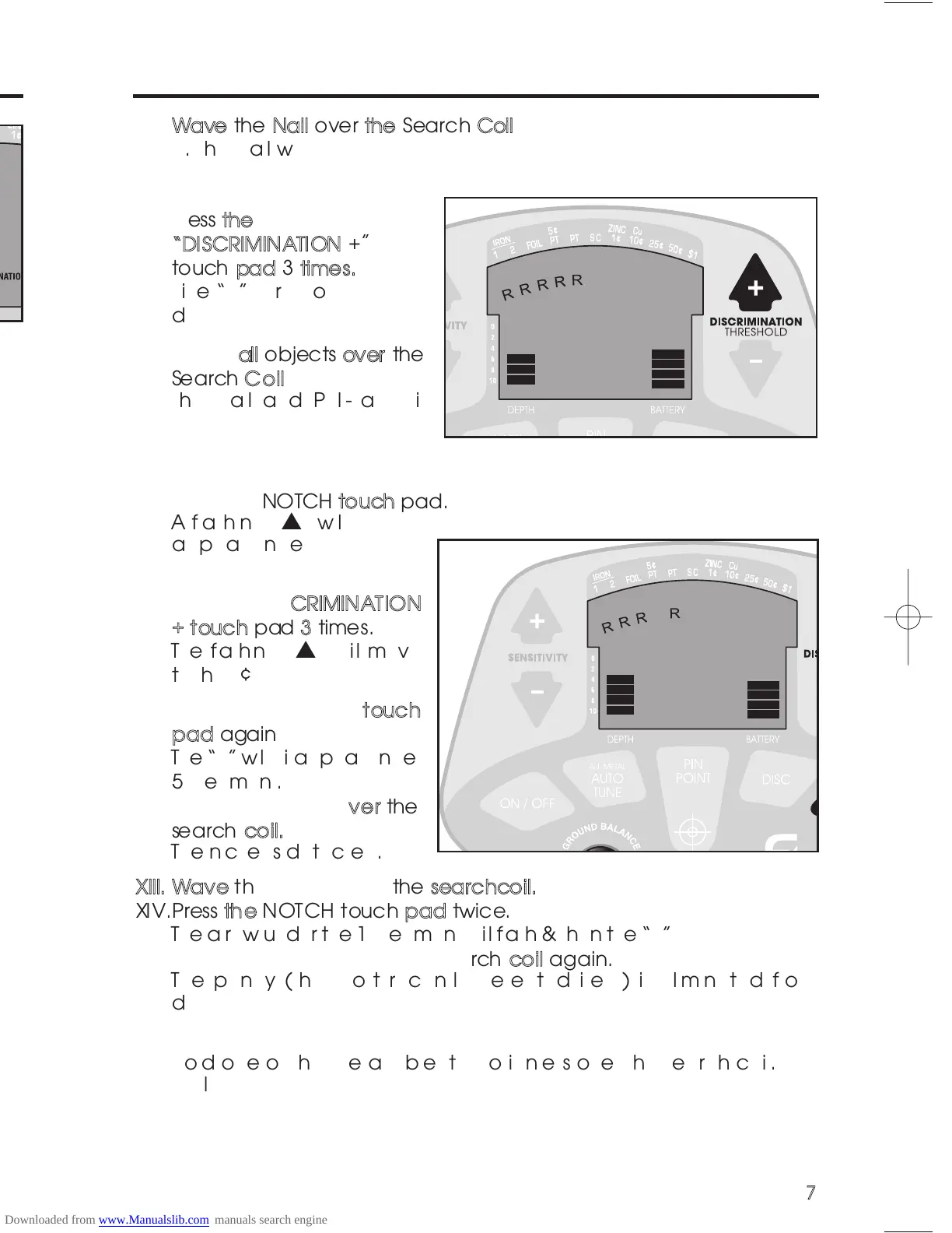 Hold one of the metal objects motionless over the search coil.
