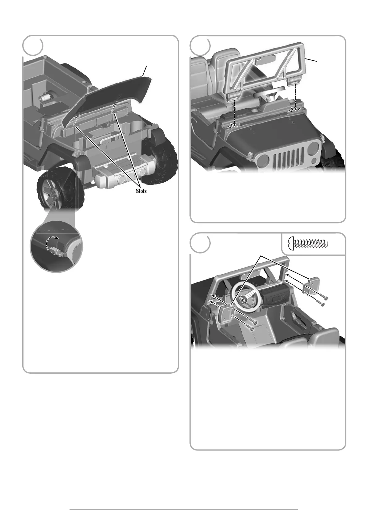 • “Snap” the tabs on the windshield into the slots in the top side of