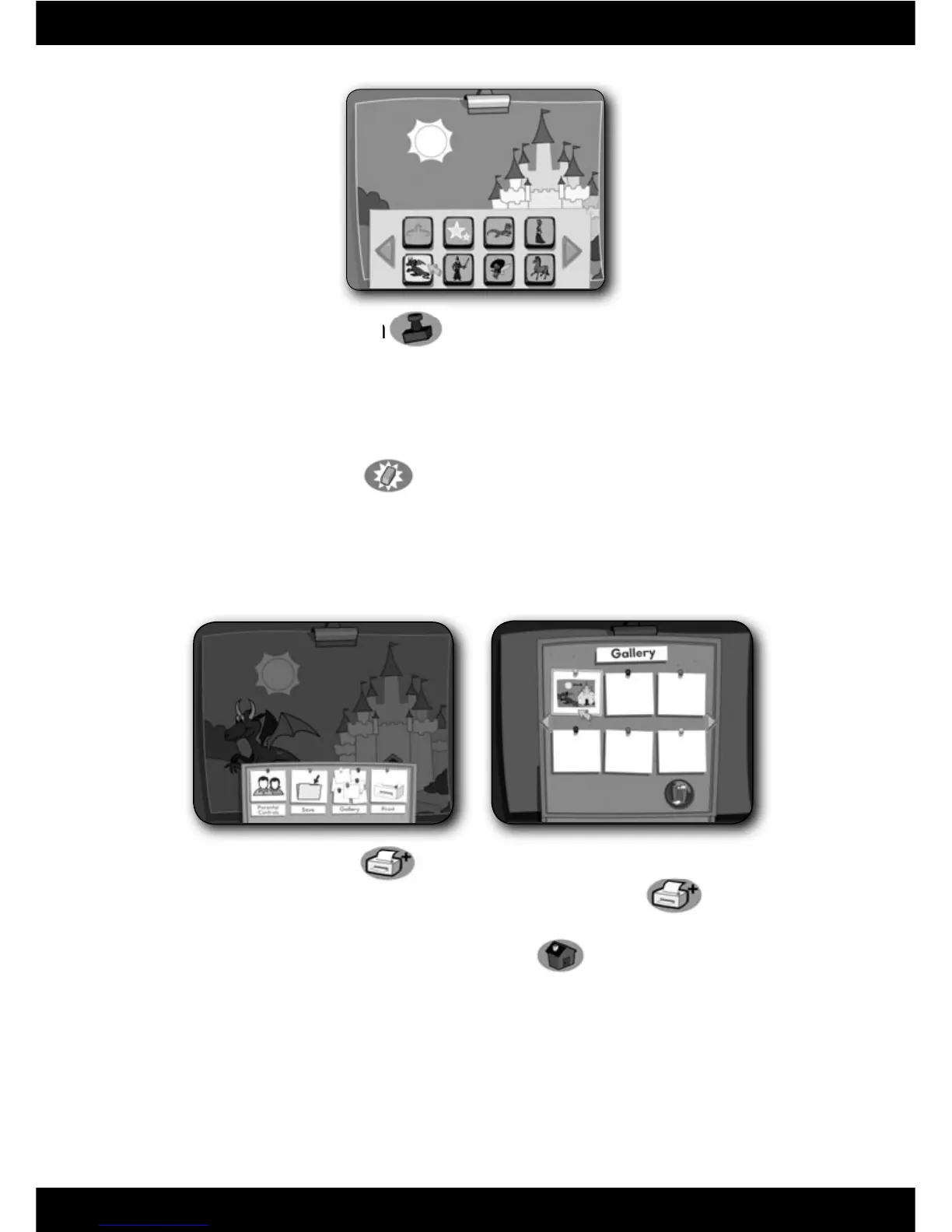 – Press this button to print your pictures or save them in the Gallery.