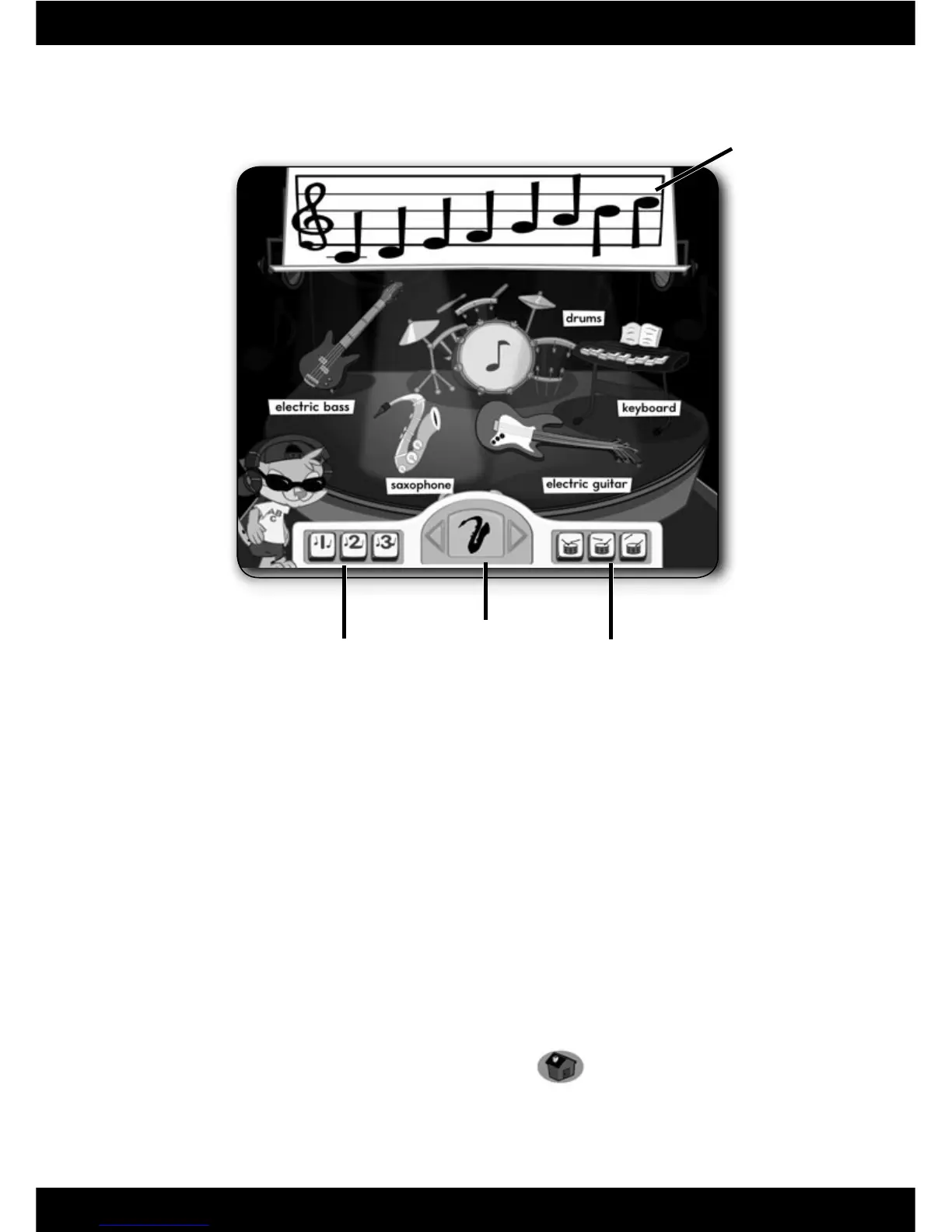 • Click on the 1, 2 or 3 button for a song to play along with Leo. Click on any
