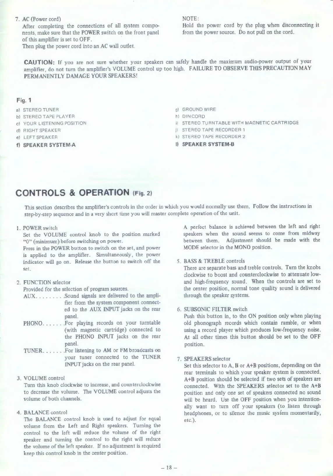 Fisher CA-2030 - CONTROLS & OPERATION; POWER switch; FUNCTION selector; VOLUME control
