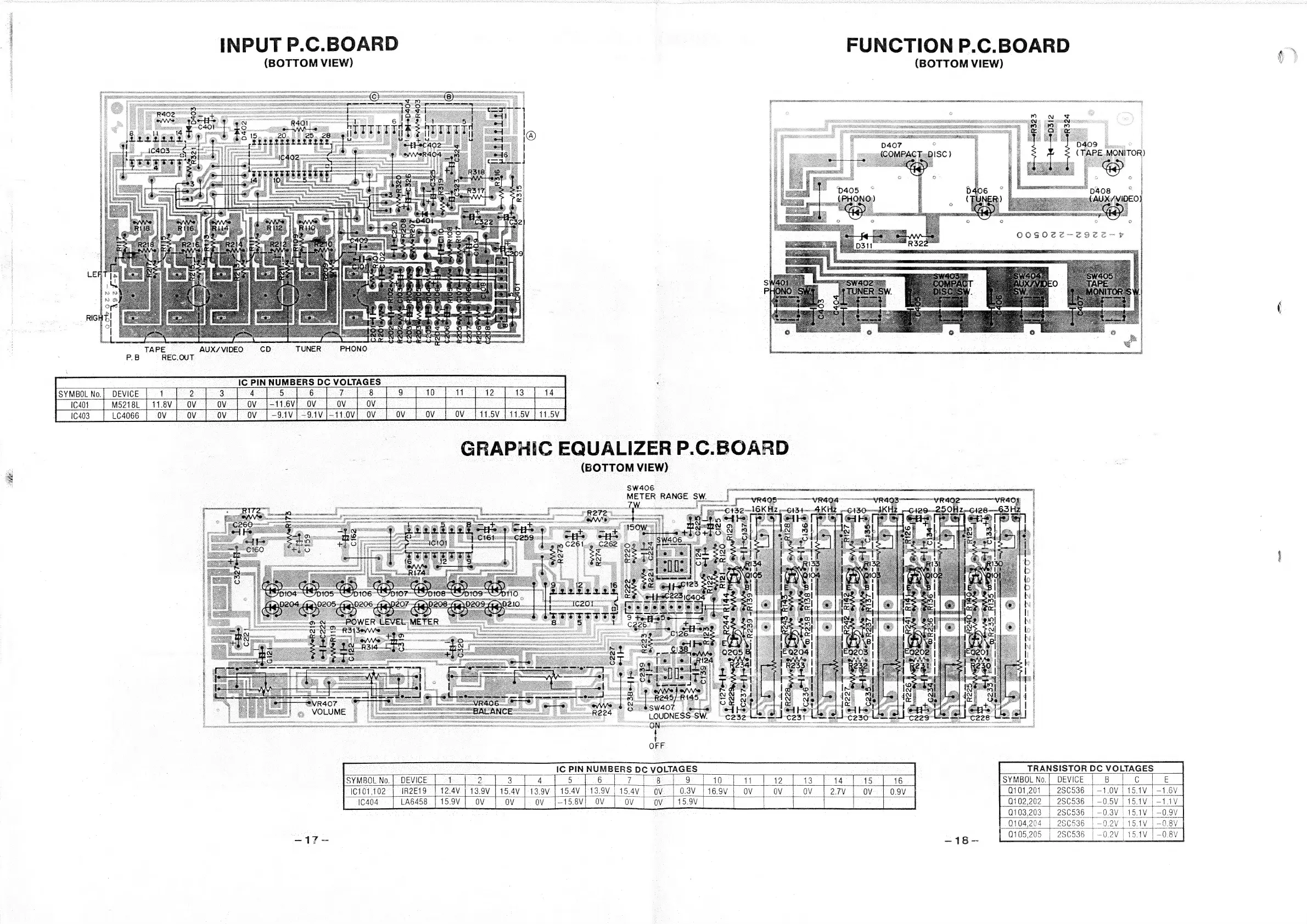Fisher CA-271 - Input P.C.B. (Bottom View); Function P.C.B. (Bottom View); Graphic Equalizer P.C.B. (Bottom View)