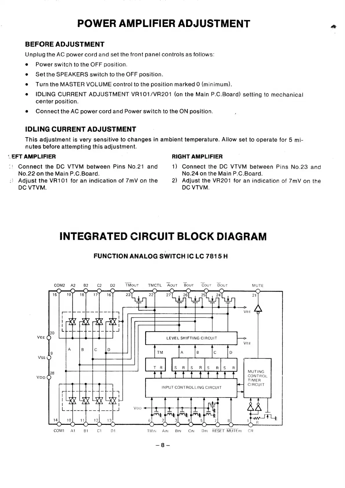 Fisher CA-271 - Power Amplifier Adjustment; Integrated Circuit Block Diagram