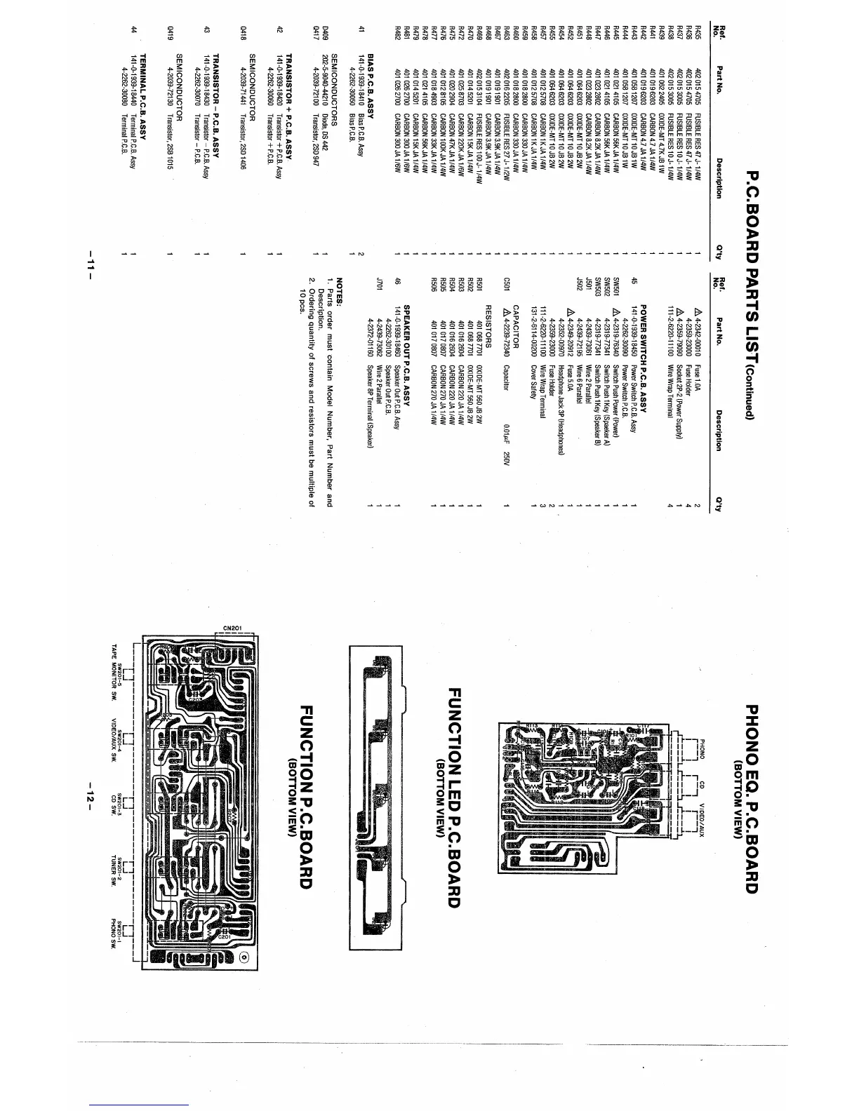 Fisher CA-857 - Printed Circuit Board Parts List - Continued 3; Various PCB Assemblies Components