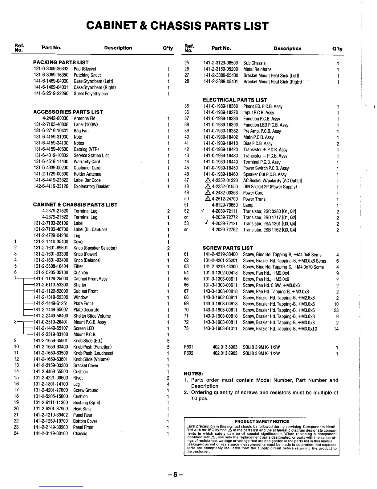 Fisher CA-857 - Cabinet and Chassis Parts List