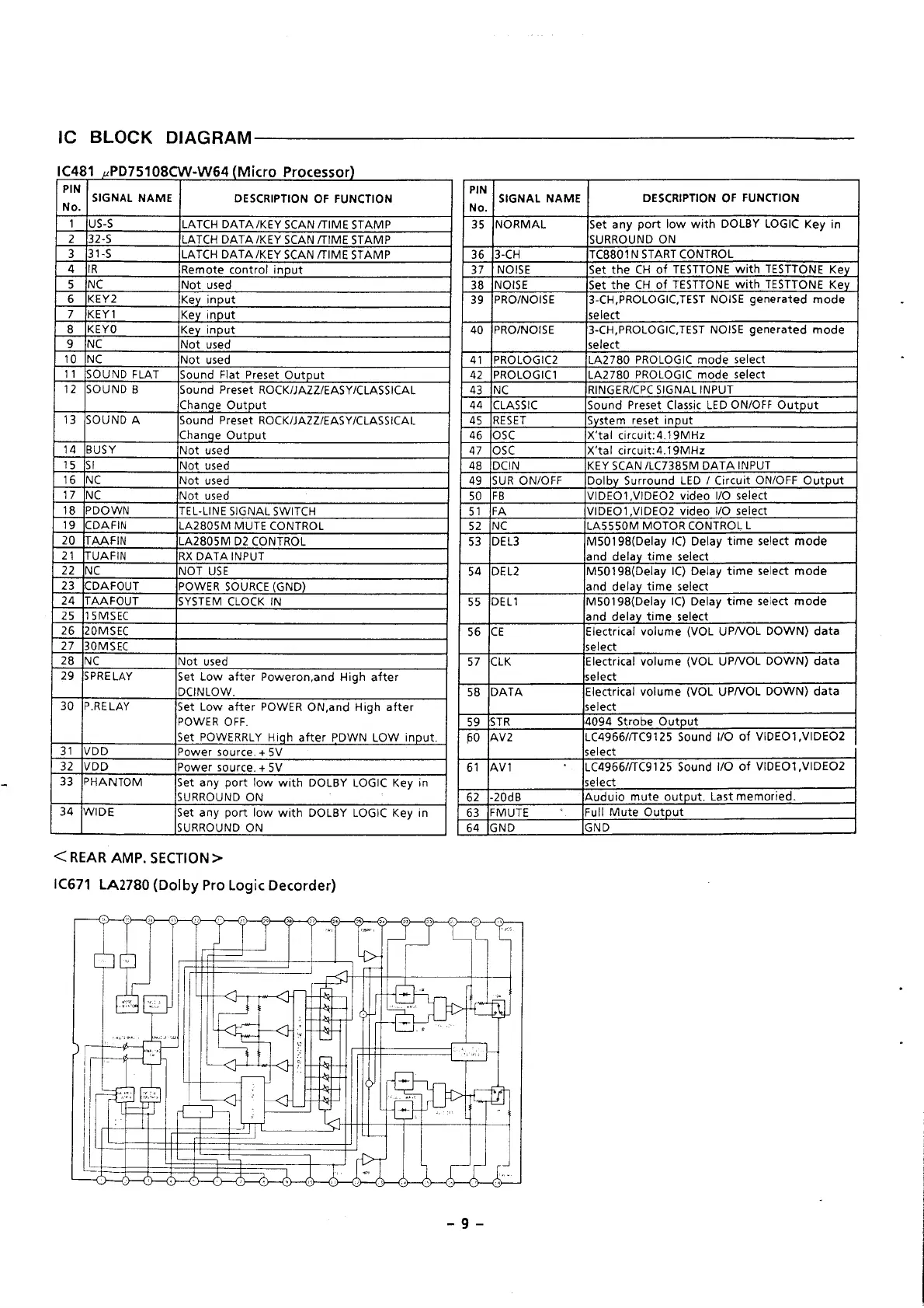 Fisher CA-9335 - IC481 PD75108 CW-W64 (Micro Processor); IC671 LA2780 (Dolby Pro Logic Decoder)