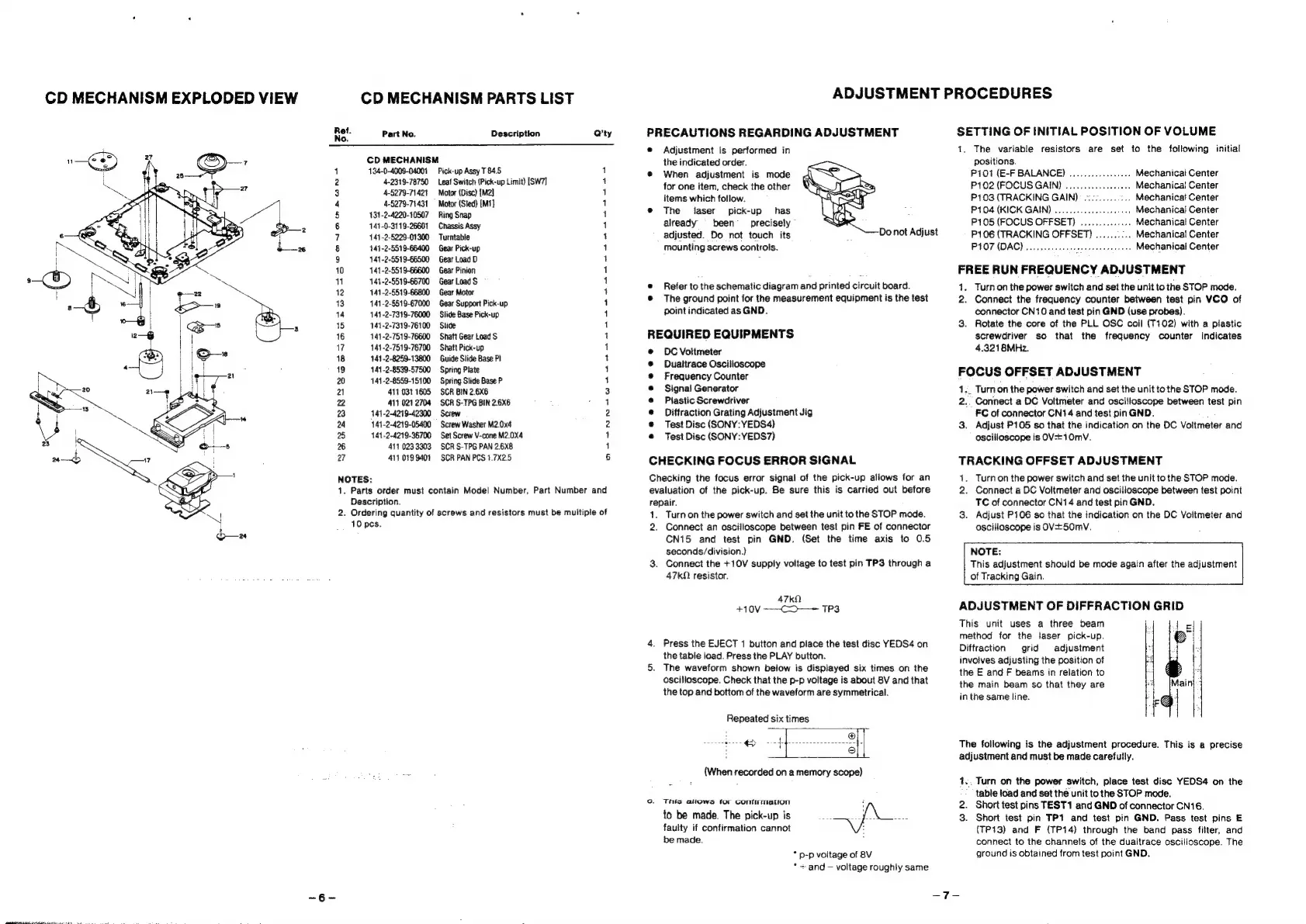 Fisher DAC-204 - CD Mechanism Exploded View; Adjustment Procedures