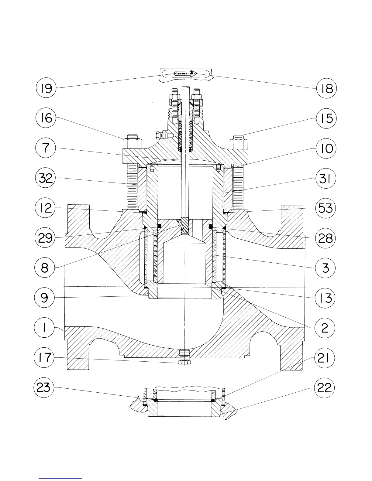 Figure 17. Design ET Valve Assembly with Whisper Trim III Cage