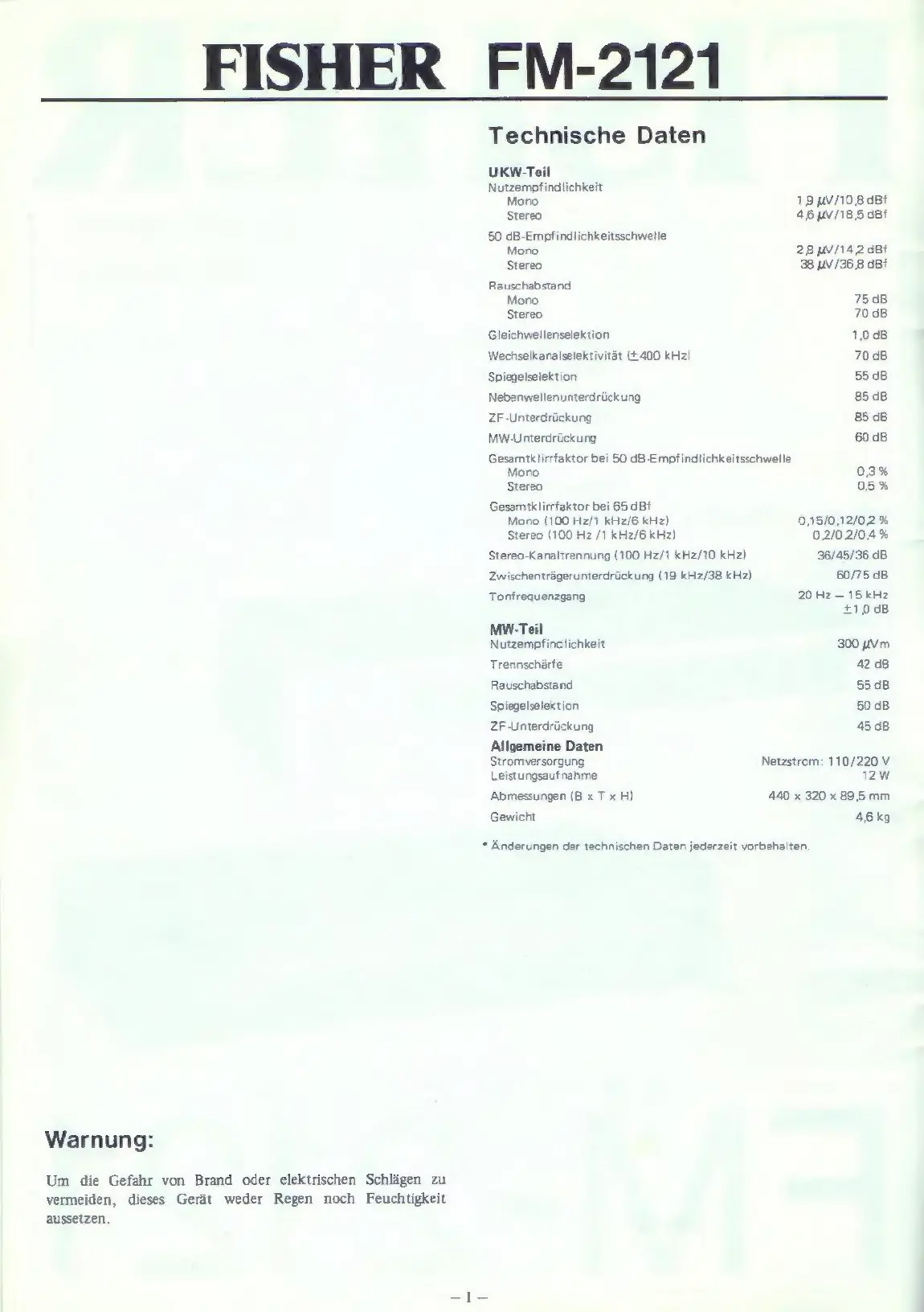 Fisher FM-2121 - Page 2