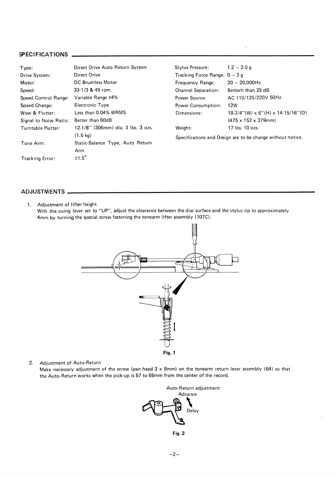 Fisher MT-6130 - Specifications