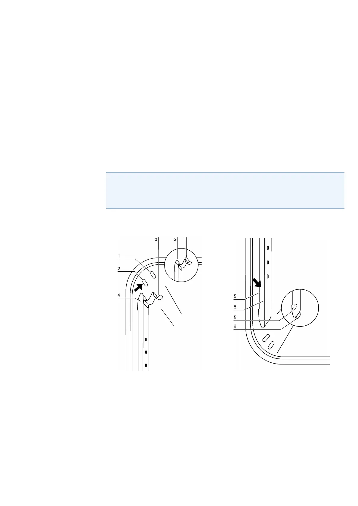 1. Place the support rail [4] on the lower embossing [6] and tilt it upwards against the work