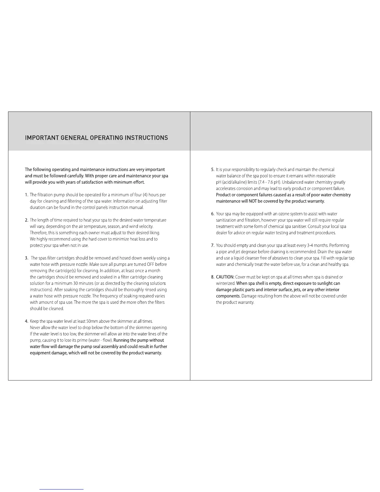 Fisherspas Fisher Five+ - Important General Operating Instructions; Filtration Pump Operation; Filter Cartridge Cleaning; Water Level Maintenance